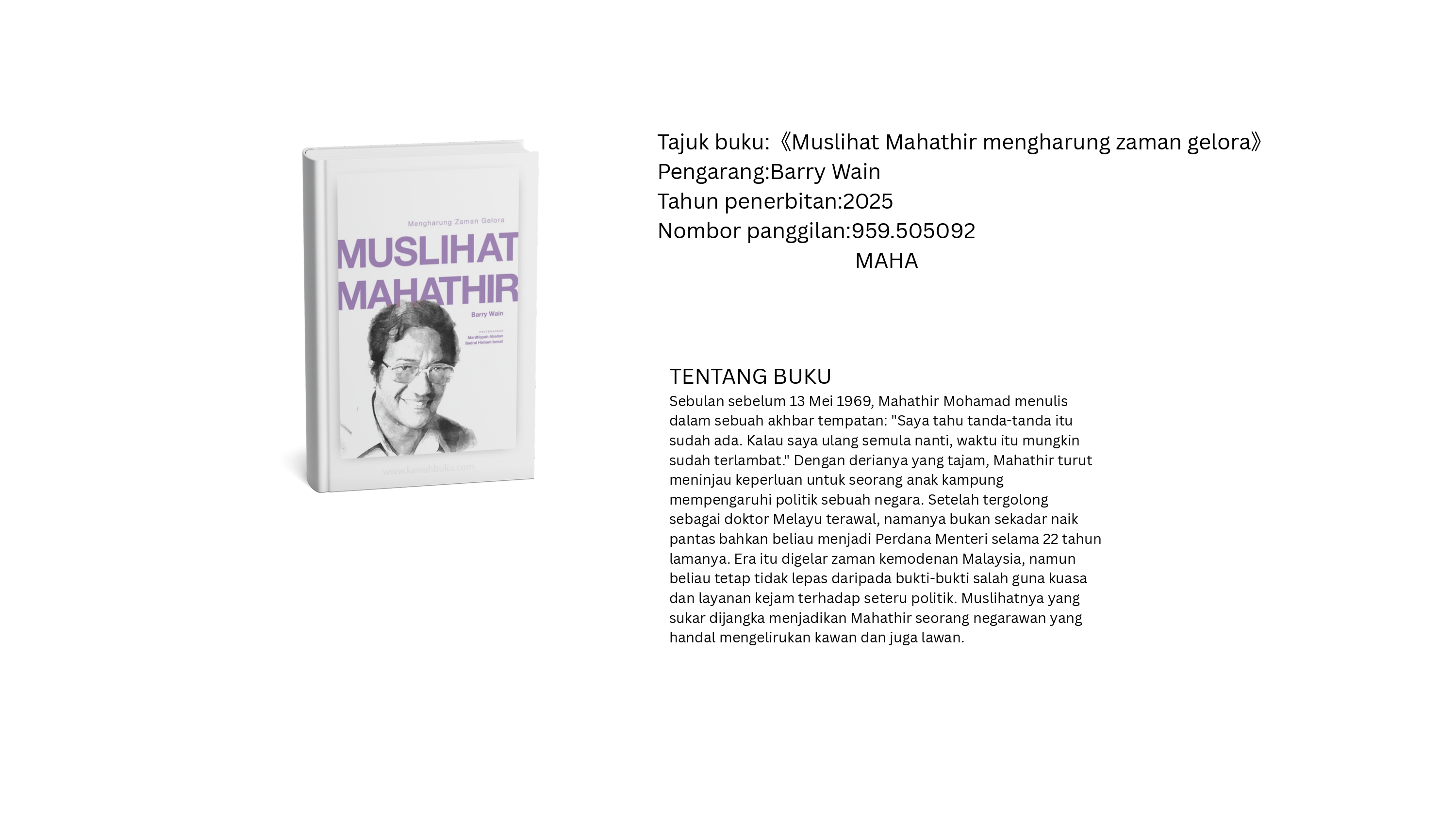 图书馆推荐书单 - Muslihat Mahathir mengharung zaman gelora