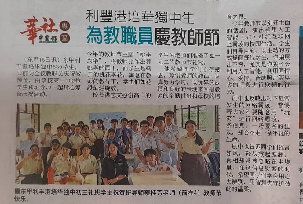 利丰港培华独中宣布 明年调整学杂费与宿舍费