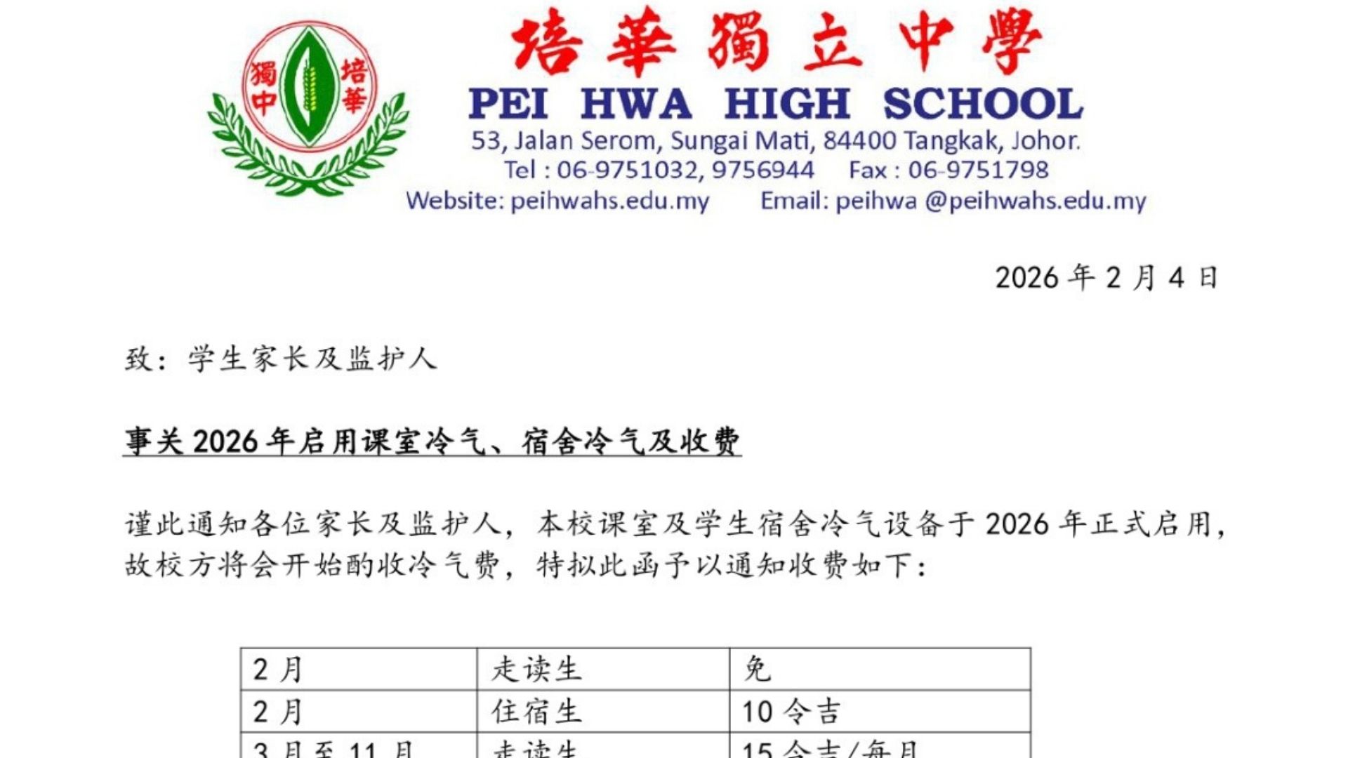 事关2026年启用课室冷气、宿舍冷气...点击了解更多