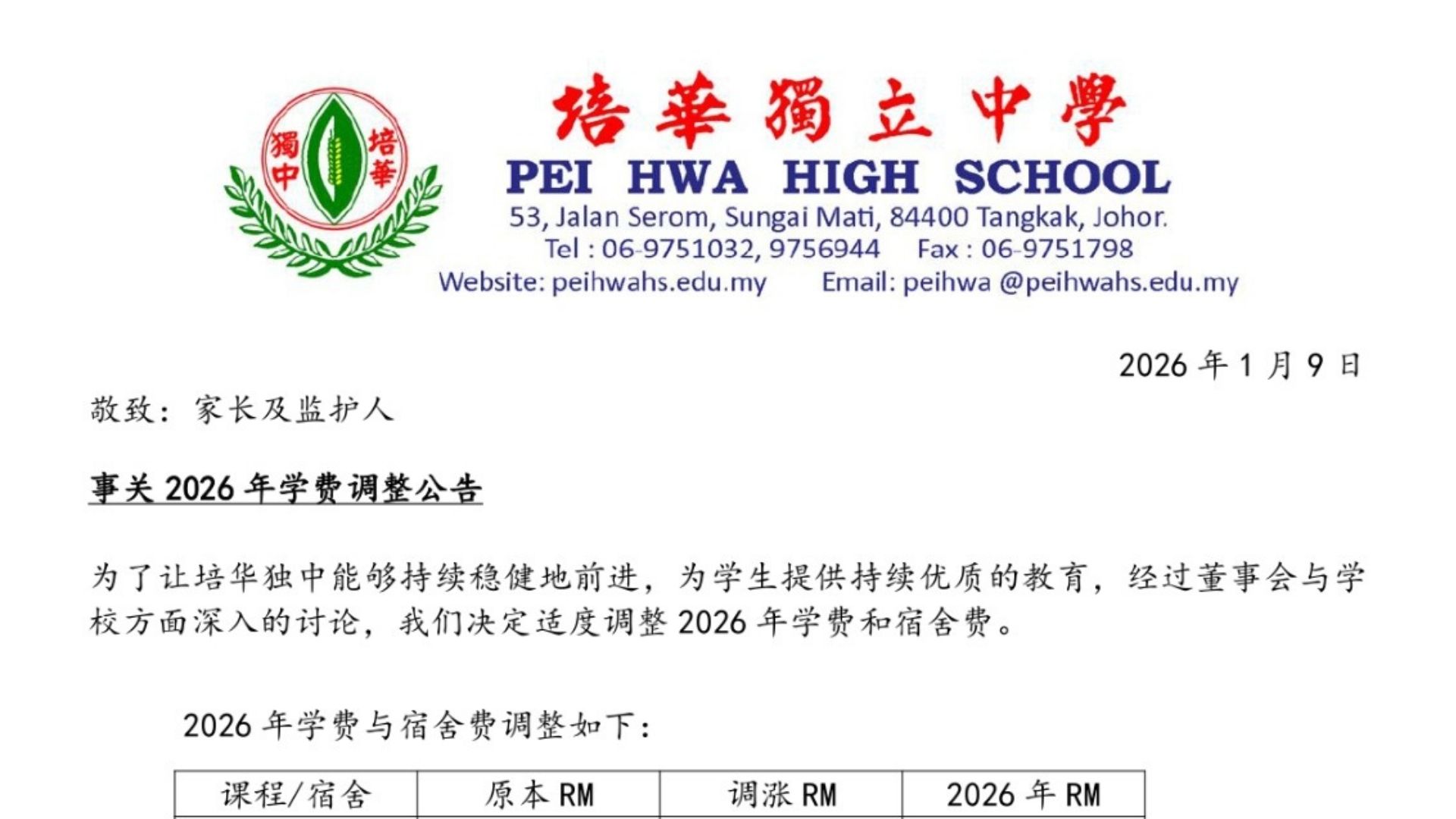 培华独中2026年课程表..点击了解更多