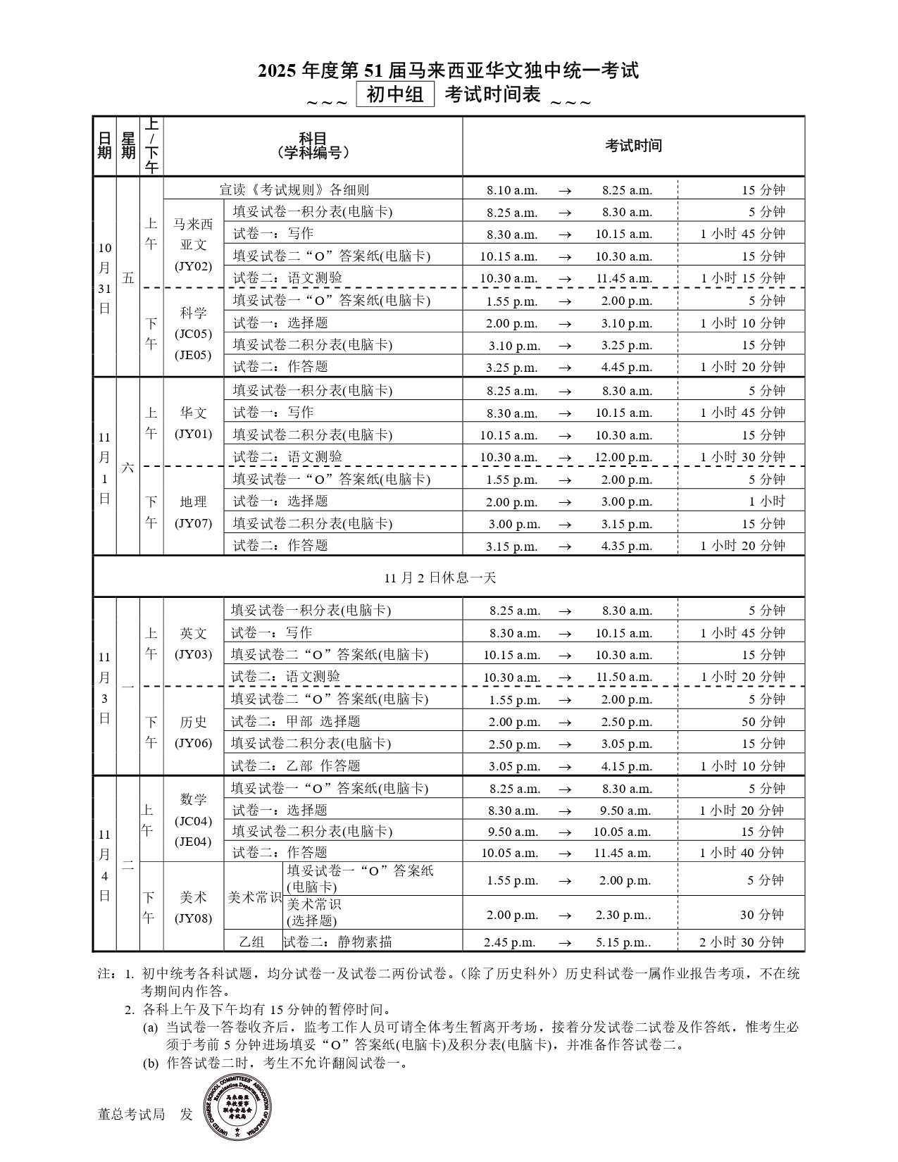 2025统考(高初中第51届/技术科第33届)