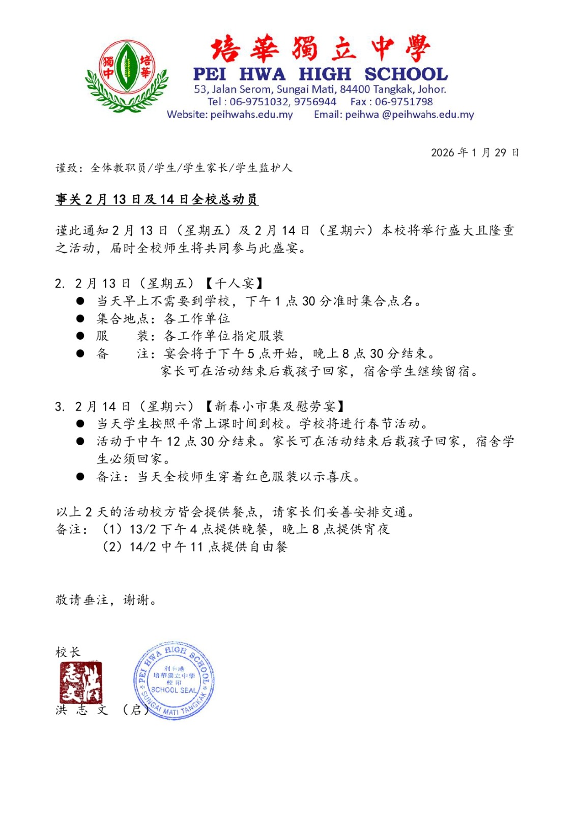 事关2月13日及14日全校总动员