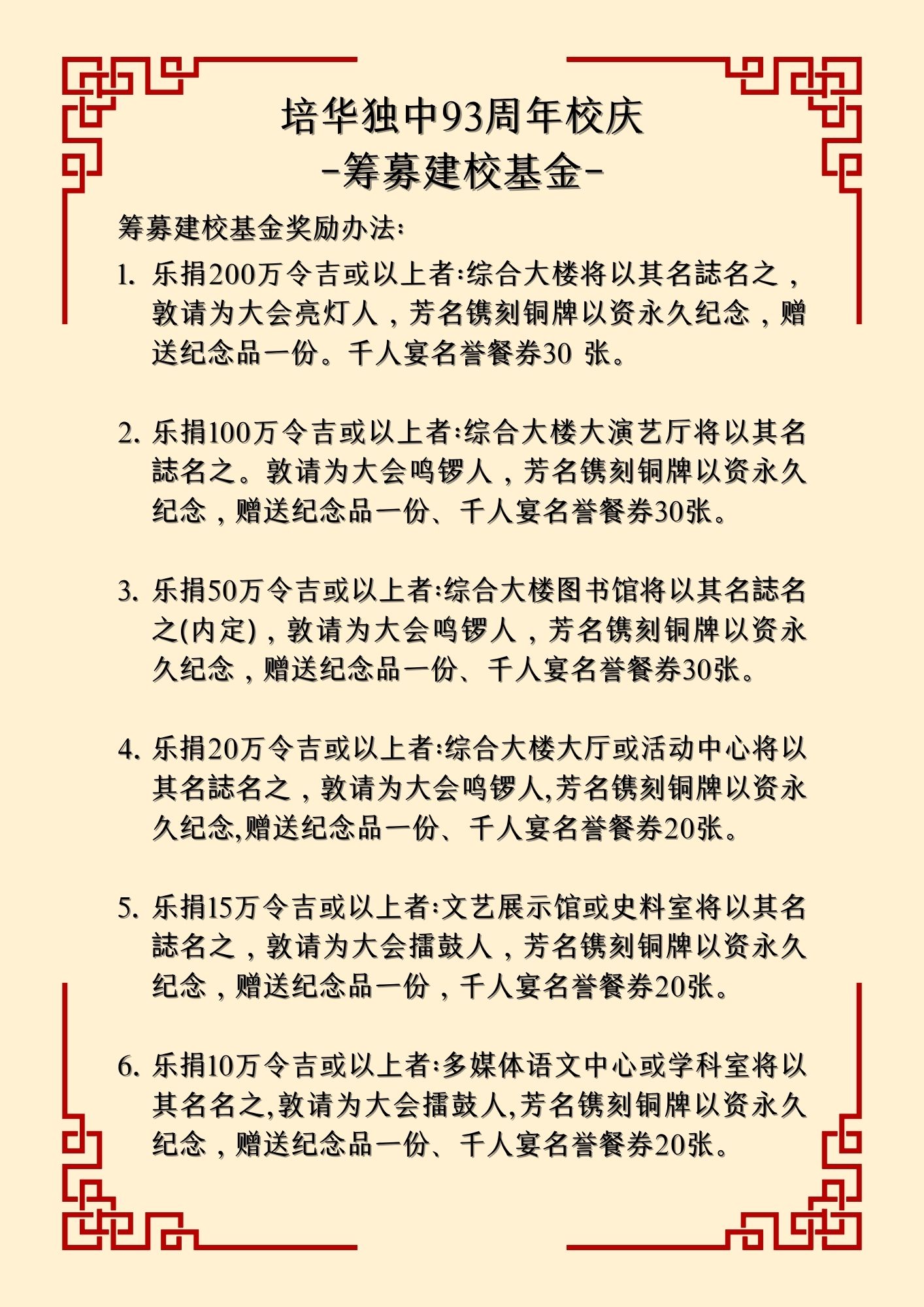 近年来全球遭受新冠疫情肆虐,国内各行各业亦大受冲击。目前整个大环境经济低迷,百物上涨,明知筹款不易,唯本校董事会无奈地知难而行,秉持再穷不能穷教育的理念,矢志落实上述一连串建设大计,为培华独中奠定教育基业,这也将在培华校史上缔造另一个辉煌的里程碑。华文独中是属于全体华人的事业,让我们共同以承先启后的无私奉献精神,一同为独中奋斗!恳请广大热心华教人士、华团乡会、商会组织、寺庙与慈善机构、本校董事会顾问团、校友和家长,鼎力支持,慷慨解囊,玉成壮举,共同成就百年树人之千秋大业!
