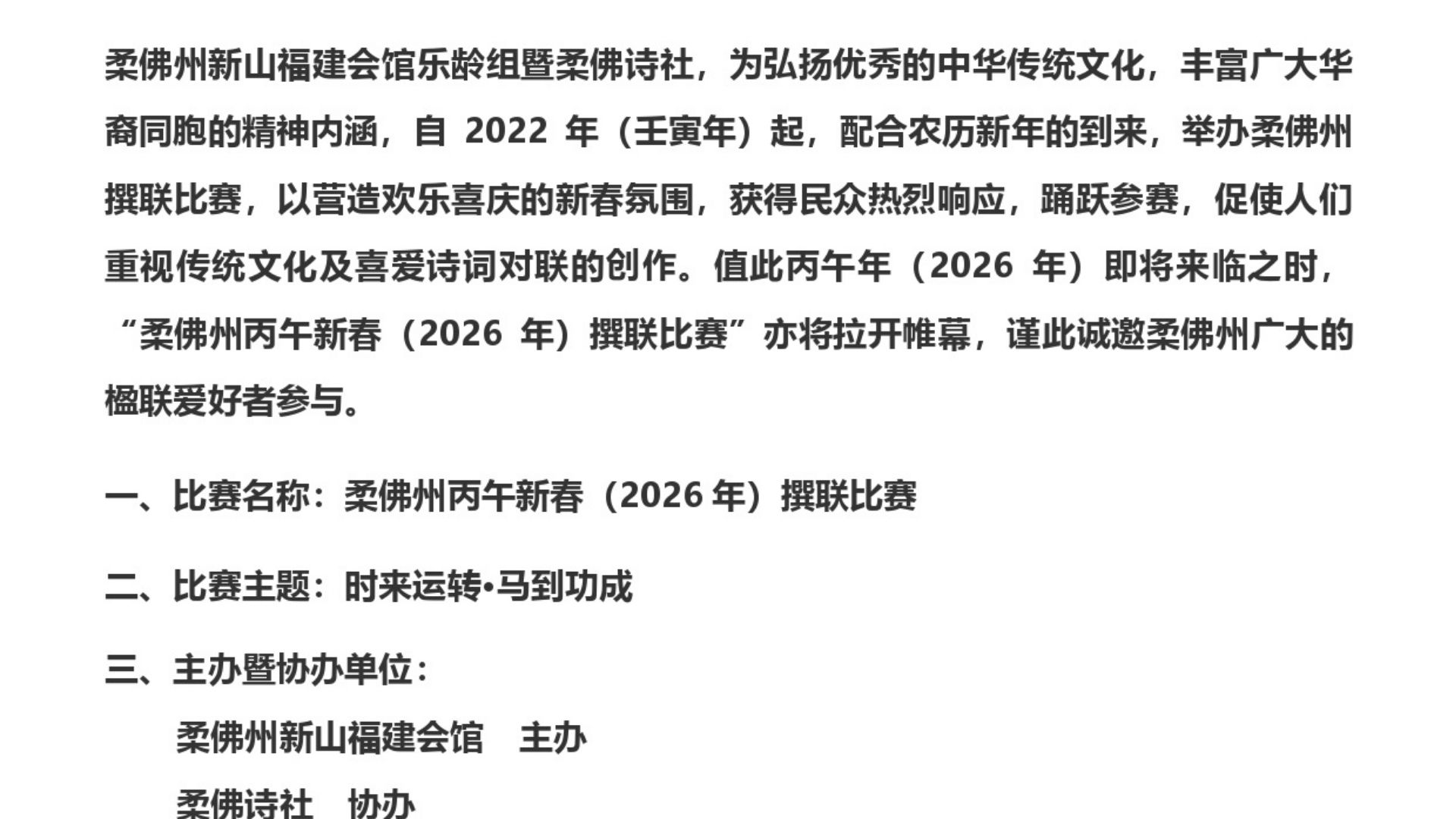 柔佛州丙午新春(2026年)撰联比赛..点击了解更多
