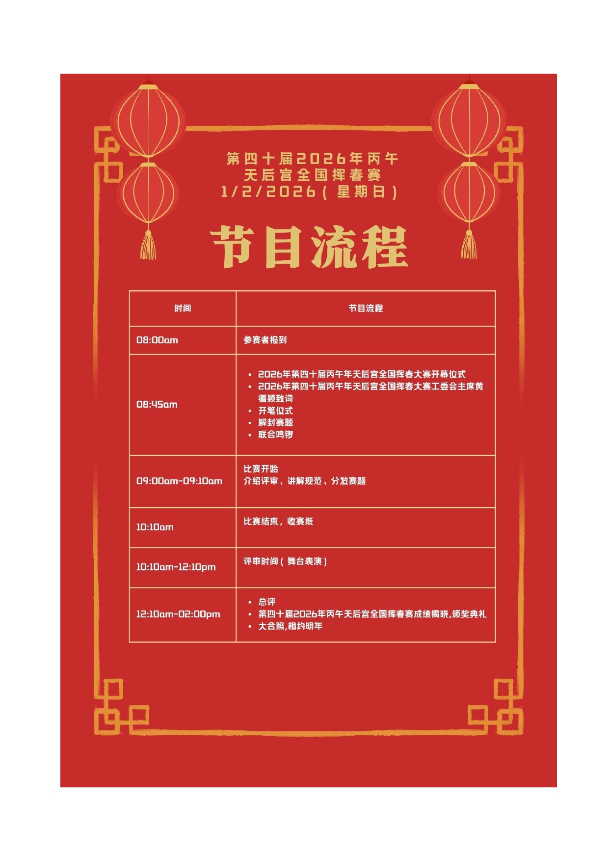 第40届2026丙午天后宫挥春大赛