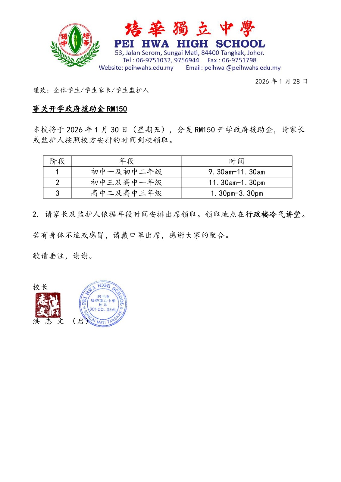 电子邮箱: peihwa@peihwahs.edu.my