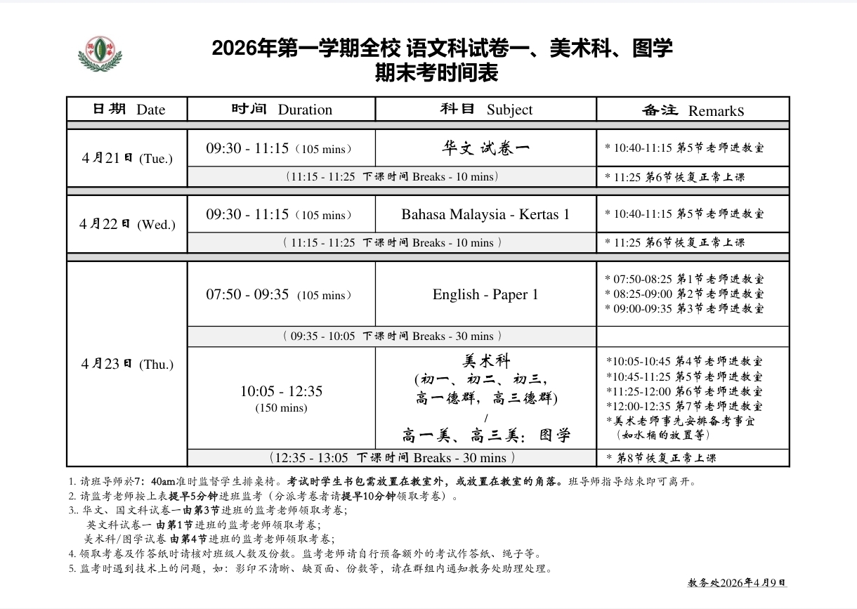 利丰港培华独中 校园通告